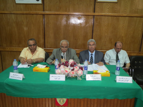 وبحضور السيد الأستاذ الدكتور/ حسن فرغلي عزقل - وكيل الكلية لشئون الدراسات العليا والبحوث ، والسيد الأستاذ الدكتور/ طارق أبو الفضل محمد – وكيل الكلية لشئون التعليم والطلاب ، والسادة رؤساء الأقسام ، والسادة أعضاء هيئة التدريس ومعاونيهم.