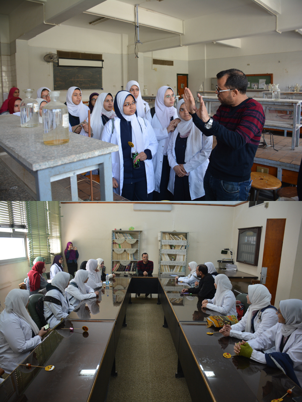 • قام بزيارة الكلية مجموعة من طالبات مدرسة الجامعة الثانوية بنات وذلك للتعرف على الكلية ، حيث تم وضع برنامج للزيارة شمل زيارة بعض الأقسام والمعامل ومنها معامل قسم الكيمياء العضوية الصيدلية ، ومتحف النباتات الطبية بقسم العقاقير.