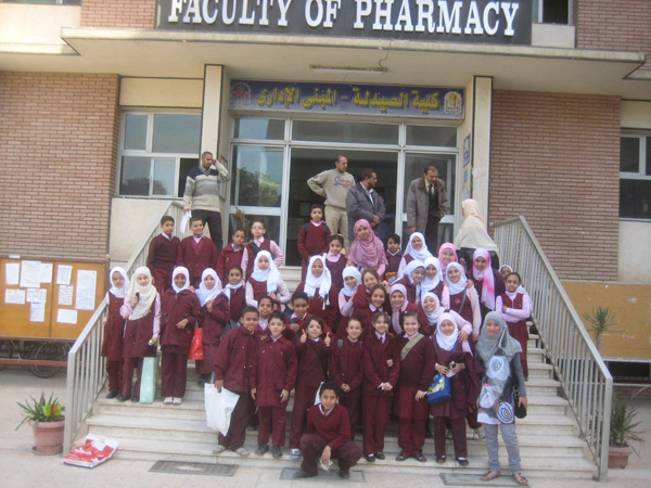 - وأيضا شارك بالحضور السيدة الأستاذ الدكتورة/ ألفت الشافعى – أستاذ العناية الحرجة بكلية التمريض – التى قامت بالتنسيق بين المعهد والكلية للزيارة وعقب إنتهاء الفيلم التسجيلى تم توزيع بعض الحلوى على الطلاب ثم توجهوا لزيارة بعض المعامل والأقسام ومنها صالة اللياقة البدنية ومركز المعلومات الدوائية ومعامل الحاسب الآلى الطلابى وقسم الكيمياء العضوية الصيدلية ومتحف النباتات الطبية بقسم العقاقير وزيارة قسم الكيمياء الطبية وقسم الصيدلة الصناعية وزيارة المكتبة وزيارة مجمع المدرجات بالكلية وعقب إنتهاء جدول الزيارة تم أخذ الصور التذكارية أمام مدخل المبنى الإدارى بالكلية.
