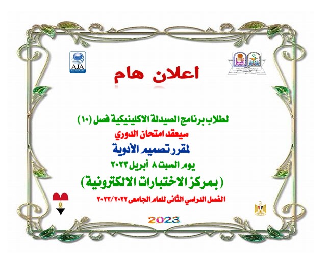قائمة بأسماء الطلاب وارقام الجلوس لمقرر "تصميم الأدوية" مقرر اختيارى