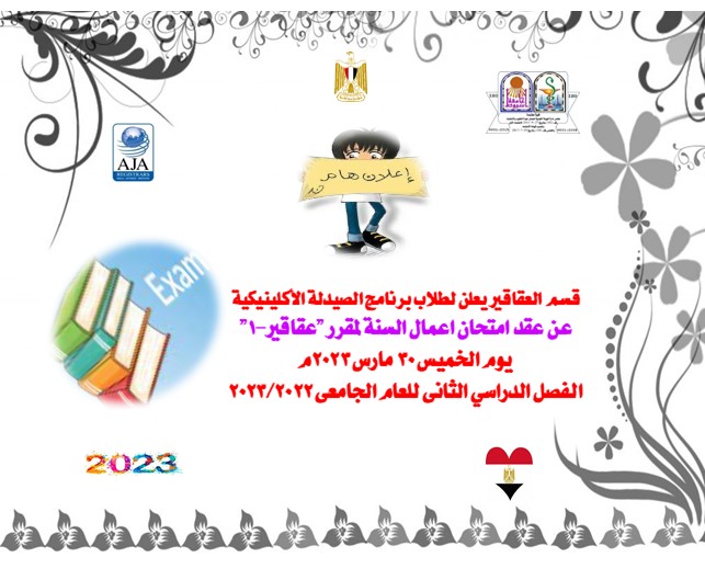 The Department of Pharmacognosy announces to the students of the Clinical Pharmacy Program the holding of the Mid-term exam for the “Pharmacognosy -1” course on Thursday, March 30, 2023.