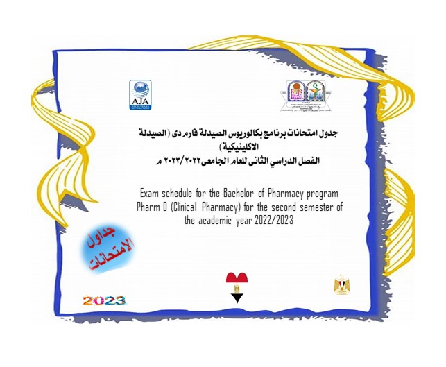 Exam schedule for the Bachelor of Pharmacy program Pharm D (Clinical Pharmacy) for the second semester of the academic year 2022/2023 6 April 2023