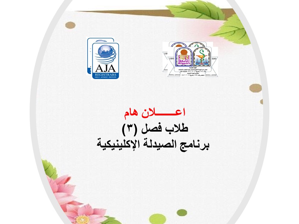 Important Announcement for Students of Class (3) Clinical Pharmacy Program