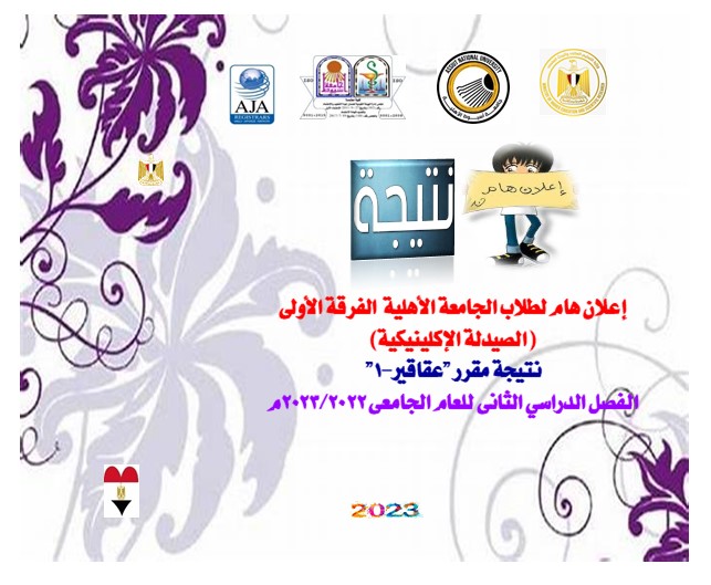 An important announcement for students of the Clinical Pharmacy Program, Al-Ahlia University, first year, result of the “Pharmacognosy-1” course, the second semester of the academic year 2022/2023