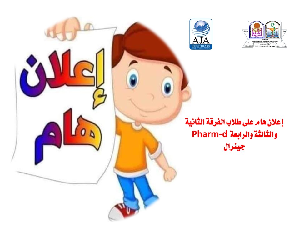 Important announcement for the students of the second, third and fourth year Pharm-D Pharmacy Program 3 October 2022