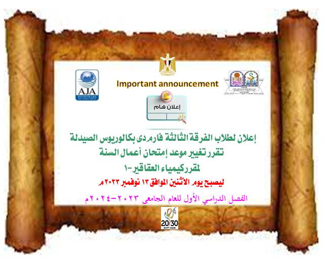 Announcement to students of the third year of Pharmacy, Bachelor of Pharmacy. It has been decided to change the date of the year’s work exam for the drug chemistry course - 1 to Monday, November 13, 2023.