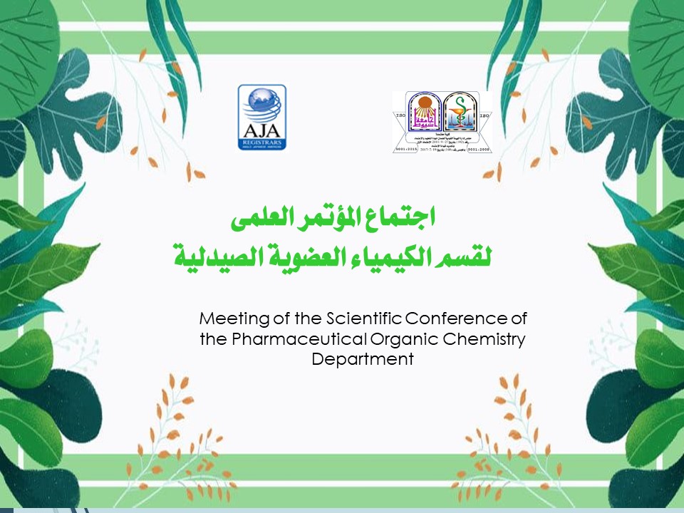 اجتماع المؤتمر العلمى لقسم الكيمياء العضوية الصيدلية يوم الأربعاء الموافق 6 أبريل 2022م الساعة العاشرة صباحاً 4 أبريل 2022 سوف يعقد بمشيئة الله تعالي اجتماع المؤتمر العلمى لقسم الكيمياء العضوية الصيدلية يوم الأربعاء الموافق 6 أبريل 2022م الساعة العاشرة صباحاً وذلك بقاعة اجتماعات مجلس القسم.