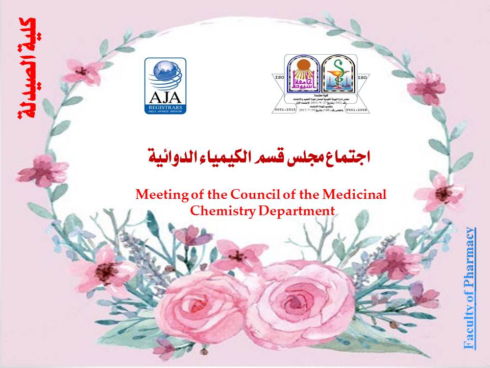 اجتماع مجلس قسم الكيمياء الدوائية بكلية الصيدلة يوم الأحد الموافق 2 أبريل 2023م الساعة العاشرة صباحاً 2 أبريل 2023 سوف يعقد بمشيئة الله تعالي اجتماع مجلس قسم الكيمياء الدوائية بكلية الصيدلة رقم (461) وذلك يوم الأحد الموافق 2 أبريل 2023م الساعة العاشرة صباحاً بمكتبة القسم