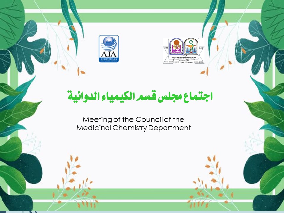 اجتماع مجلس قسم الكيمياء الدوائية يوم الثلاثاء الموافق 5 ابريل 2022 الساعة العاشرة صباحاً