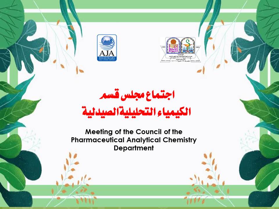 اجتماع مجلس قسم الكيمياء التحليلية الصيدلية يوم الأثنين الموافق11 أبريل 2022م الساعه الحادية عشرظهراً