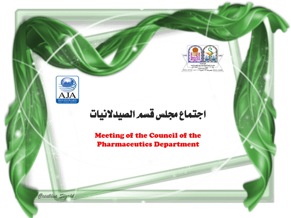 اجتماع مجلس قسم الصيدلانيات بكلية الصيدلة يوم الأثنين الموافق 9 مايو 2022م الساعة العاشرة صباحاً