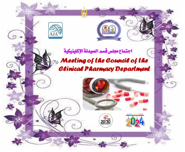 اجتماع مجلس قسم الصيدلة الإكلينيكية بكلية الصيدلة يوم الأحد الموافق 11 فبراير 2024 8 فبراير 2024 سوف يعقد بمشيئة الله تعالي اجتماع مجلس قسم الصيدلة الإكلينيكية بكلية الصيدلة رقم (98) وذلك يوم الأحد الموافق 11 فبراير 2024 الساعة الثانية عشر (ظهراً) بقاعة اجتماعات مجلس قسم الصيدلة الإكلينيكية