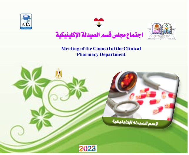 اجتماع مجلس قسم الصيدلة الإكلينيكية بكلية الصيدلة يوم الخميس الموافق 2 مارس 2023 الساعة العاشرة ونصف (صباحاً) 1 مارس 2023 سوف يعقد بمشيئة الله تعالي اجتماع مجلس قسم الصيدلة الإكلينيكية بكلية الصيدلة رقم (87) يوم الخميس الموافق 2 مارس 2023 الساعة العاشرة ونصف (صباحاً) وذلك بمكتب السيد الأستاذ الدكتور – عميد كلية الصيدلة