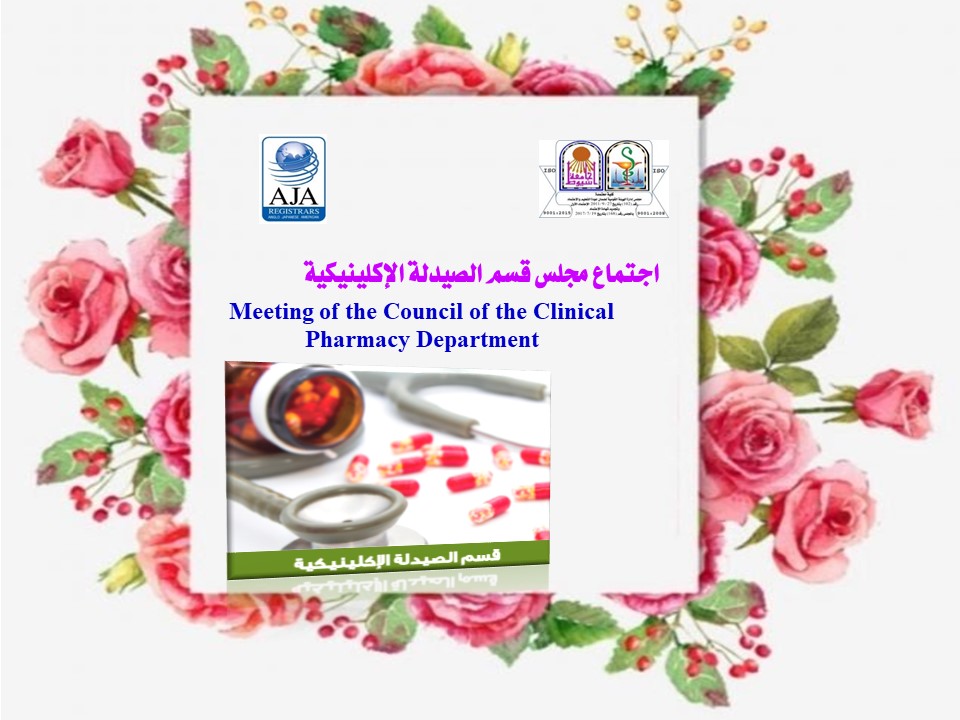 اجتماع مجلس قسم الصيدلة الإكلينيكية بكلية الصيدلة يوم الخميس الموافق 8 سبتمبر 2022م الساعة الحادية عشرة (صباحاً)