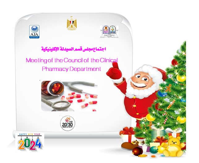 اجتماع مجلس قسم الصيدلة الإكلينيكية بكلية الصيدلة يوم الثلاثاء الموافق 9 يناير 2024 الساعة الثانية عشر ظهراً 8 يناير 2024 سوف يعقد بمشيئة الله تعالي اجتماع مجلس قسم الصيدلة الإكلينيكية بكلية الصيدلة رقم (97) وذلك الموافق يوم الثلاثاء 9 يناير 2024 الساعة الثانية عشر ظهراً بقاعة اجتماعات مجلس قسم الصيدلة الإكلينيكية