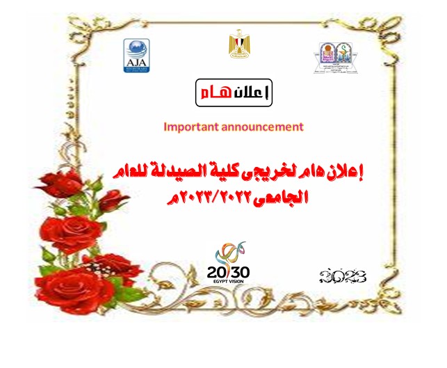 إعلان هام لخريجى كلية الصيدلة للعام الجامعى 2023/2022م