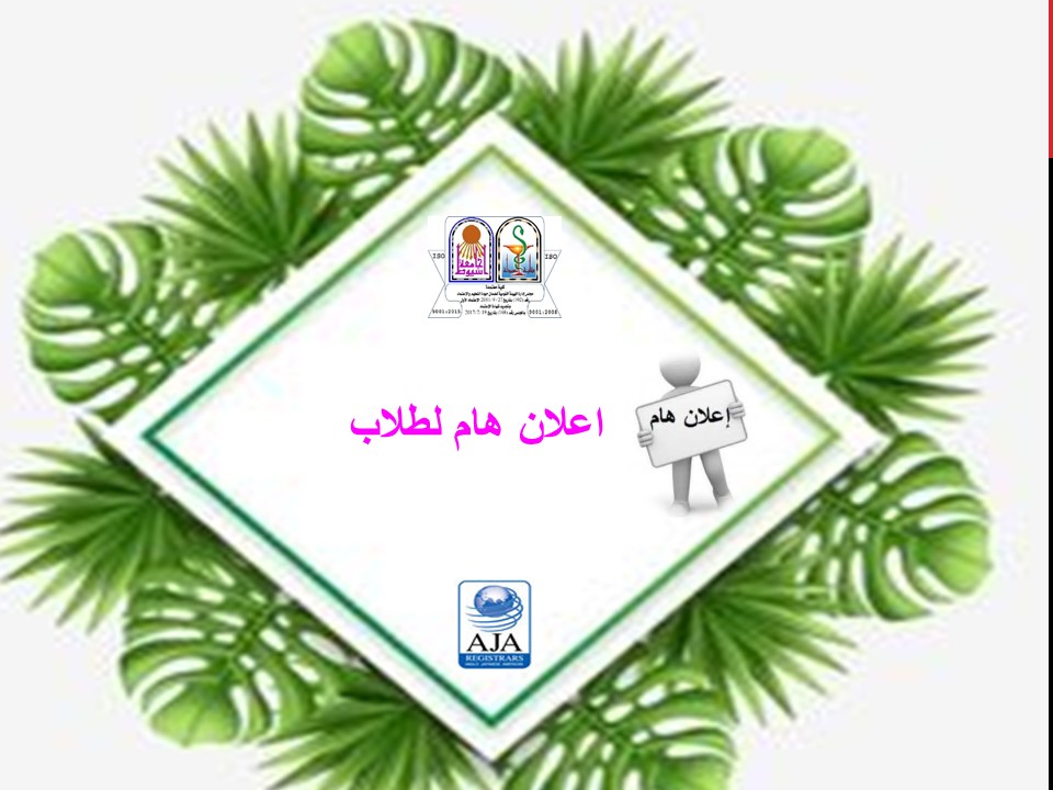 إعلان هام لطلاب الفرقة الثانية فارم دى عام (عقد امتحان اعمال سنه لمقرر التحليل الطيفي وذلك يوم الثلاثاء الموافق 17 مايو 2022م 12 أبريل 2022