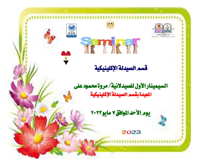 السيمينار الأول للصيدلانية/ مروة محمود على – المعيدة بقسم الصيدلة الإكلينيكية يوم الأحد الموافق 7 مايو 2023 3 مايو 2023