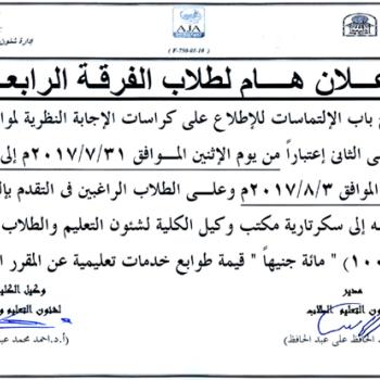 سوف يعقد بمشيئة الله تعالي اجتماع اللجنة الإدارية العليا لبرنامج الصيدلة الإكلينيكية بكلية الصيدلة وذلك يوم الأربعاء الموافق 26/7/2017م في تمام الساعة الواحدة ظهراً بقاعة مكتب السيد الأستاذ الدكتور/…