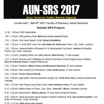 سيعقد بمشيئة الله تعالي المؤتمر البحثي الطلابي الأولي Student Research Symposium بكلية الصيدلة يوم السبت الموافق 8-4-2017م الساعة 1-5 مساءا بمدرج (ج) بالكلية.
