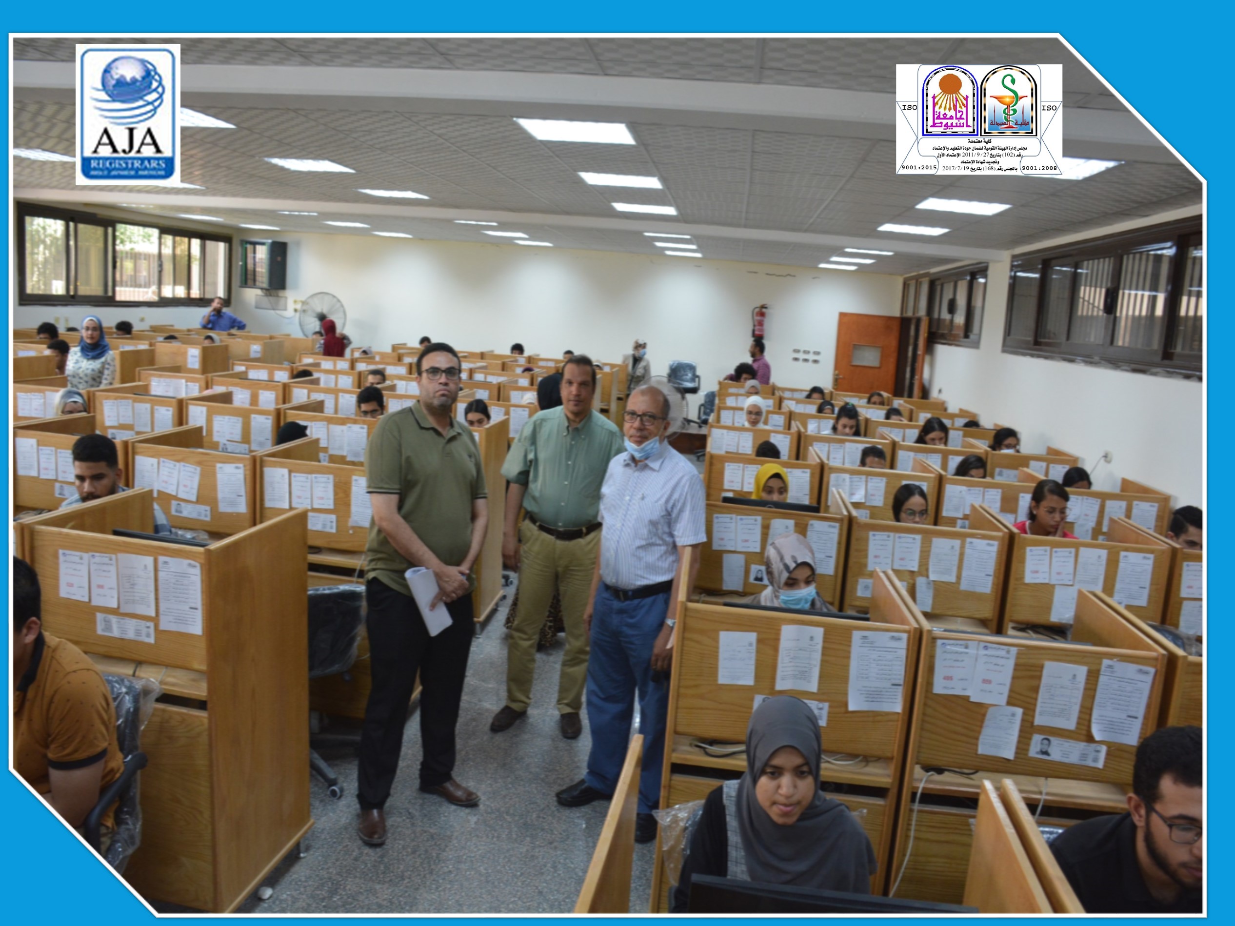 تحت إشراف السيد الأستاذ الدكتور / أحمد محمد عبدالمولى – عميد الكلية ، قام السيد الأستاذ الدكتور / حسن رفعت حسن – وكيل الكلية لشئون التعليم والطلاب ، بجولة لتفقد لجان الإمتحانات بصالة " ج " بمجمع الإمتحانات الإلكترونية بالجامعة ، وذلك تزامناً مع بدء إمتحانات الفصل الدراسى الثانى للعام الجامعى 2021/2022م ، بحضور السيدة الدكتورة / سعاد عبداللطيف حسن – مدير وحدة الخدمات التكنولوجية ، والسيد الدكتور / أحمد صفوت محمد – مدير وحدة التعليم الإلكترونى ،حيث إطمئن سيادته على الإلتزام بتطبيق كافات التعليمات المنظمه لعملية الإمتحانات
