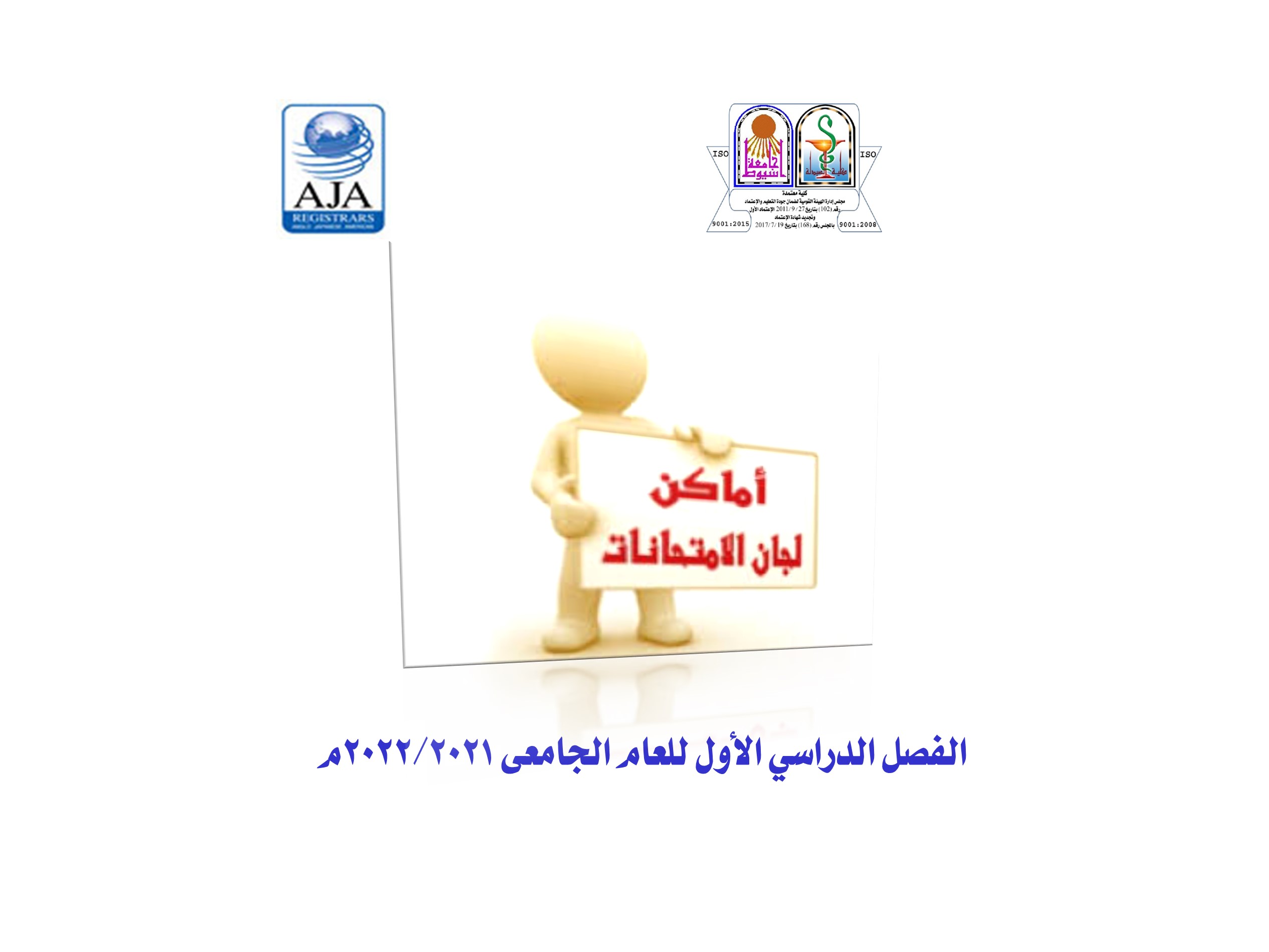 بيان بأماكن ومواقع لجان امتحانات بداية الفصل الدراسي الأول للعام الجامعى 2021-2022م للفرق المختلفة (أولى Pharm D – ثانية Pharm D ثالثة Pharm D – رابعة)