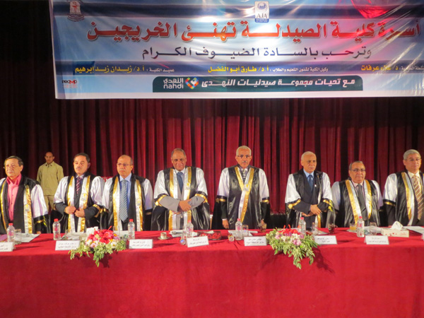 - تحت رعاية السيد اللواء الوزير/ إبراهيم حماد - محافظ أسيوط ، والسيد الأستاذ الدكتور/ محمد عبد السميع- رئيس الجامعة نظمت كلية الصيدلة احتفالية كبيرة لخريجي الدفعة "48" بكالوريوس العلوم الصيدلية والدفعة الثالثة لبرنامج الصيدلة الإكلينيكية وذلك بحضور السيد المهندس/ مجدي سليم- سكرتير عام محافظة أسيوط ، والسيد الأستاذ الدكتور/ عادل ريان- نائب رئيس الجامعة لشئون التعليم والطلاب ، والسيد الأستاذ الدكتور/ زيدان زيد إبرهيم- عميد الكلية ، والسيد الأستاذ الدكتور/ طارق أبو الفضل- وكيل الكلية لشئون التعليم والطلاب ، والسيد الأستاذ الدكتور/ حسن فرغلى عزقل- وكيل الكلية لشئون الدراسات العليا والبحوث ، والسيد الأستاذ الدكتور/ محروس عثمان أحمد- وكيل الكلية لشئون خدمة المجتمع وتنمية البيئة ، والسيد الدكتور/ علاء عرفات حيالله- منسق الأنشطة الطلابية ، والسيد الدكتور/ ألبير توفيق- نقيب صيادلة أسيوط.