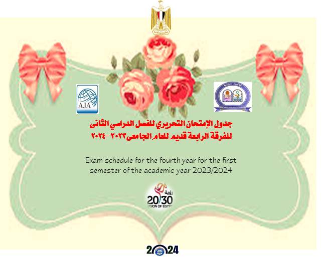 جدول الإمتحان التحريري للفصل الدراسي الثانى للفرقة الرابعة قديم للعام الجامعى 2023-2024 28 أبريل 2024