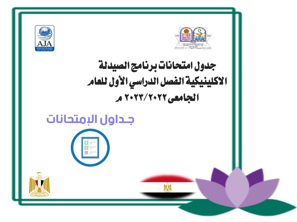 جدول امتحانات برنامج الصيدلة الاكلينيكية الفصل الدراسي الأول للعام الجامعى 2023/2022 م