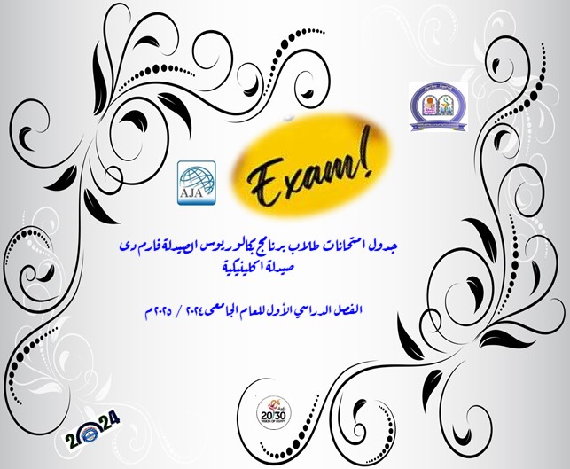 جدول امتحانات طلاب برنامج بكالوريوس الصيدلة فارم دى (صيدلة اكلينيكية) الفصل الدراسي الأول للعام الجامعى 2024 / 2025م 27 نوفمبر 2024