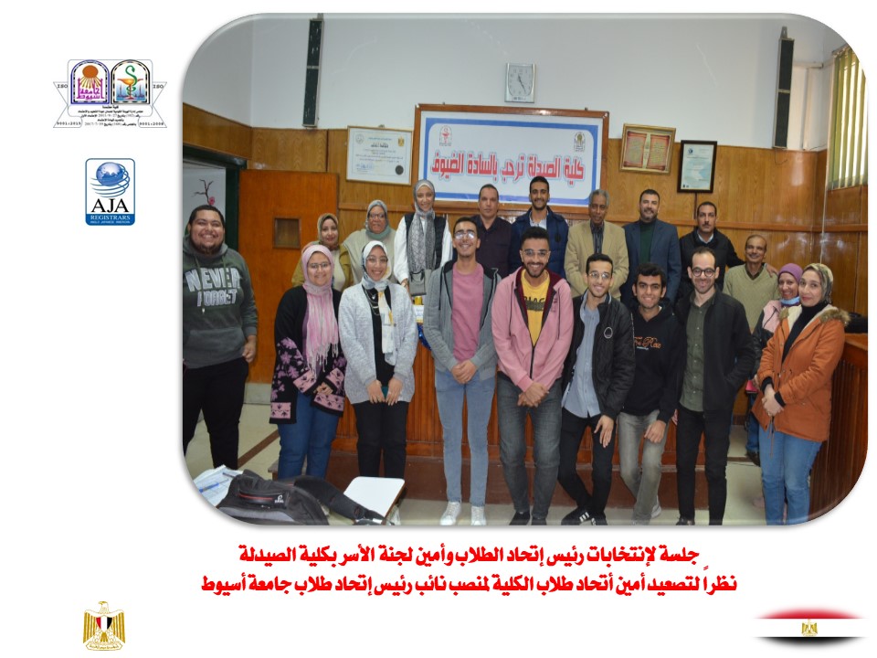 جلسة لإنتخابات رئيس إتحاد الطلاب وأمين لجنة الأسر بكلية الصيدلة  نظراً لتصعيد أمين أتحاد طلاب الكلية لمنصب نائب رئيس إتحاد طلاب جامعة أسيوط