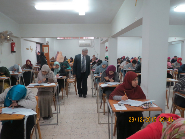 في صباح يوم الثلاثاء الموافق 29/12/2015م ومع بداية امتحانات الفصل الدراسي الأول للعام الجامعي 2015/2016م قام السيد الأستاذ الدكتور/ محروس عثمان أحمد – القائم بأعمال عميد الكلية ، والسيد الأستاذ الدكتور/ طارق أبو الفضل محمد - وكيل الكلية لشئون التعليم والطلاب بجولة تفقدية للجان امتحانات الفصل الدراسي الأول بمجمع المدرجات وصالات الامتحانات حيث يعقد امتحان مادة (علم الأدوية 1) للفرقة الثالثة.