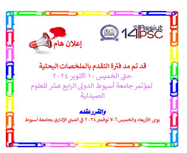 لمؤتمر جامعة أسيوط الدولى الرابع عشر للعلوم الصيدلية