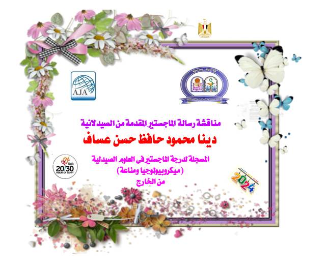 مناقشة رسالة الماجستير المقدمة من الصيدلانية / دينا محمود حافظ حسن عساف - المسجلة لدرجة الماجستير فى العلوم الصيدلية (ميكروبيولوجيا ومناعة) من الخارج 8 فبراير 2024