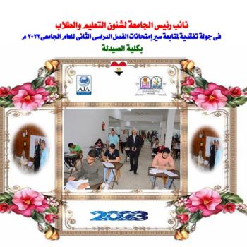 نائب رئيس الجامعة لشئون التعليم والطلاب فى جولة تفقدية لمتابعة سير إمتحانات الفصل الدراسى الثانى للعام الجامعى 2023 م بكلية الصيدلة