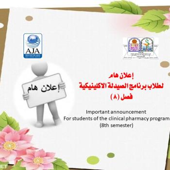 إعلان هام لطلاب برنامج الصيدلة الاكلينيكية فصل (8) لمقرر "علاج الاورام"