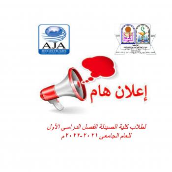اعلان هام لطلاب بــرنامج العلوم الصيدلية (الفرقة الثانية والثالثة حديث والفرقة الثالثة والرابعة)