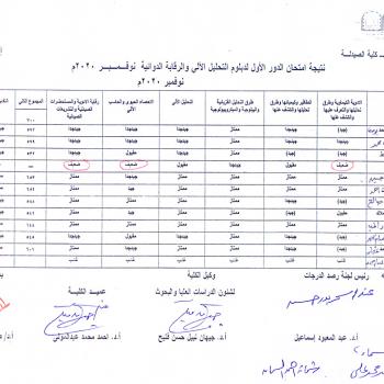 نتيجة أمتحان الدراسات العليا دور نوفمبر 2020م (دور أول) لدبلومات (التحليل الآلي والرقابة الدوائية)