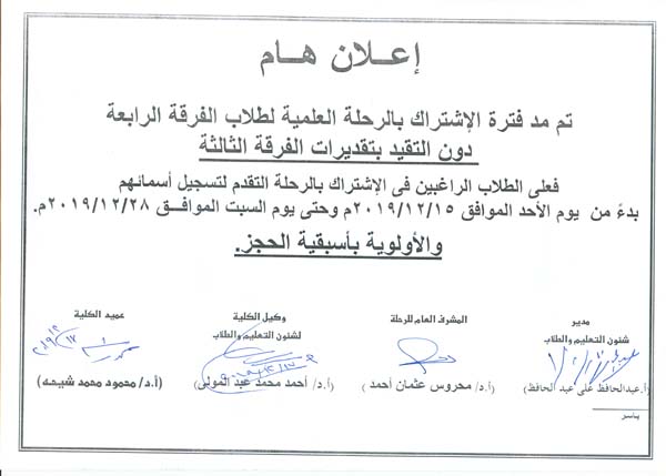 تحدد يوم الاثنين الموافق 23/12/2019م في تمام الساعة العاشرة صباحاً لمناقشة الرسالة المقدمة من