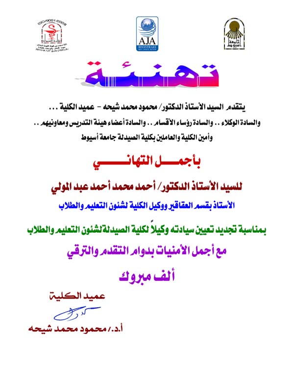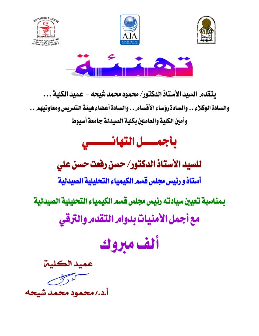 أستاذ الكيمياء التحليلية الصيدلية المساعد بكلية الصيدلة - جامعة أسيوط (مشرفا)