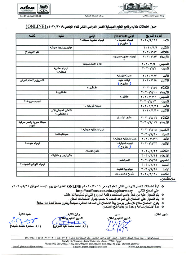 سوف يعقد بمشيئة الله تعالي اجتماع مجلس قسم الصيدلة الصناعية بكلية الصيدلة رقم (463) وذلك يوم الأحد الموافق 10-5-2020م الساعة الحادية عشر صباحاً بمكتب السيد الأستاذ الدكتور/ رئيس القسم.