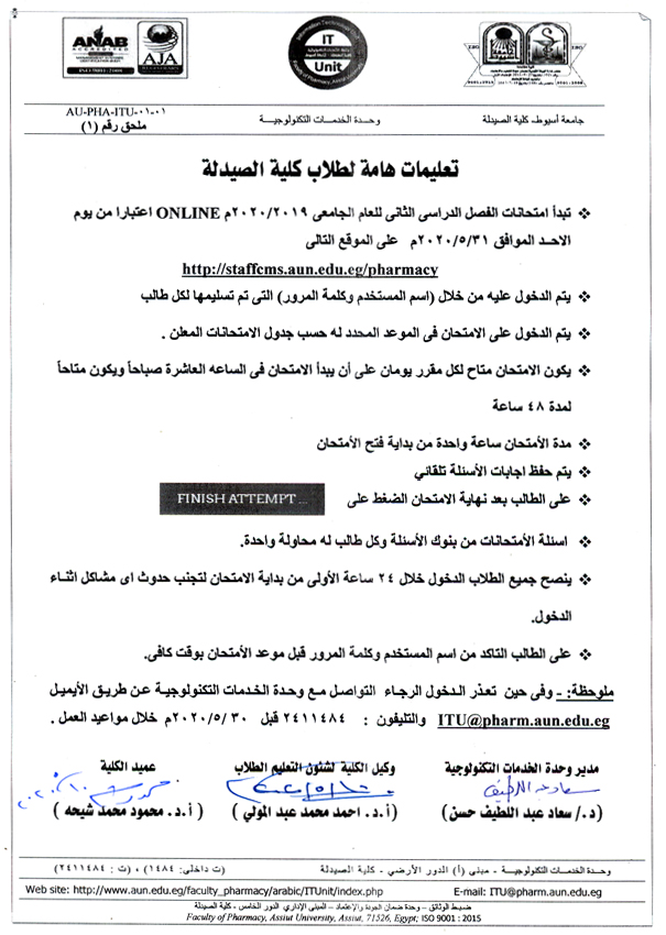 • سوف يعقد بمشيئة الله تعالي اجتماع اللجنة التنفيذية لبرنامج الصيدلة الإكلينيكية يوم الأربعاء الموافق 13-5-2020م ، الساعة العاشرة صباحاً وذلك بدعوة من السيد الأستاذ الدكتور/ محمود محمد شيحه – عميد كلية الصيدلة ورئيس البرنامج.
