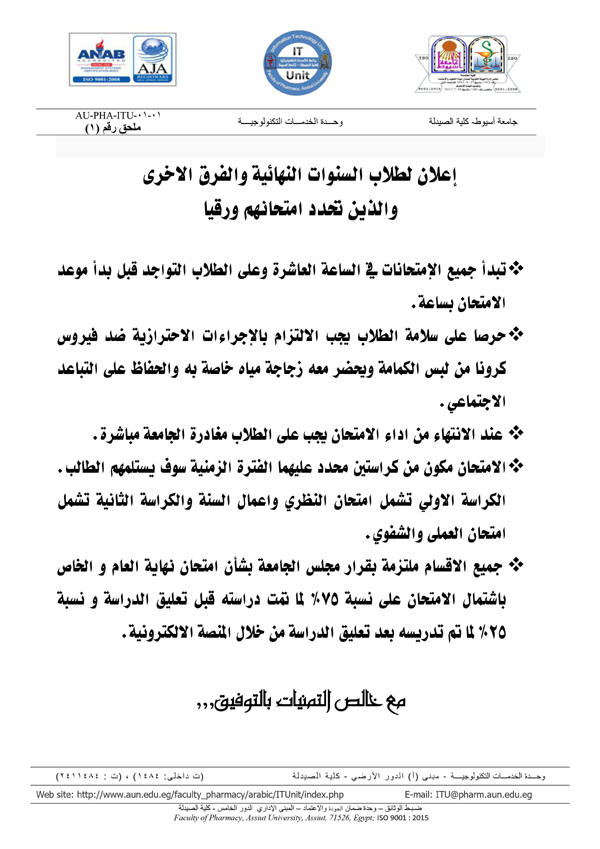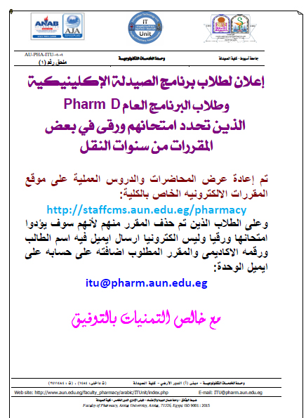 هام جدا .. لطلاب برنامج الصيدلة الإكلينيكية وطلاب البرنامج العام Pharm D الذين تحدد امتحانهم ورقى في بعض المقررات من سنوات النقل.