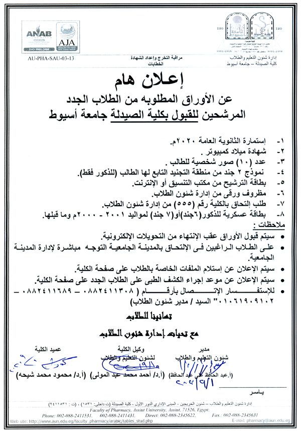 سوف يعقد بمشيئة الله تعالي اجتماع مجلس قسم الكيمياء العضوية الصيدلية بكلية الصيدلة رقم (418) وذلك يوم الأربعاء الموافق 26-8-2020م الساعة الحادية عشر صباحاً بقاعة اجتماعات مجلس القسم.