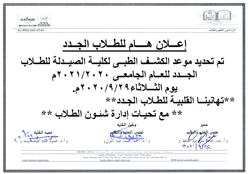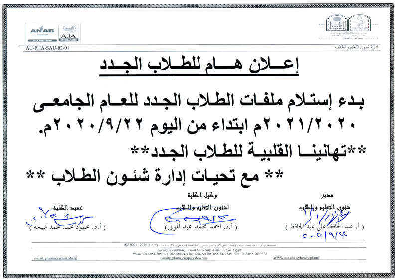 - Read more about هام للطلاب الجدد للعام الجامعي 2020-2021م .. بدء استلام الملفات من اليوم 22-9-2020م.