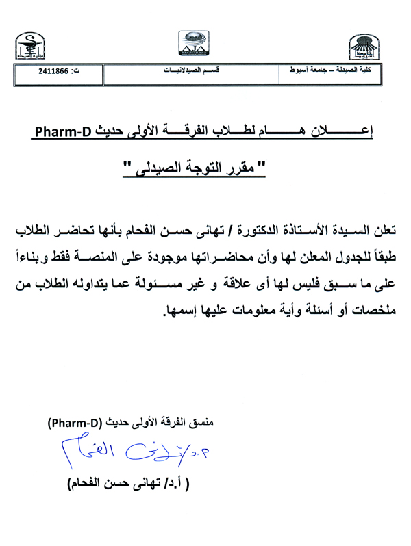 بشأن إختيار أمين لمجلس كلية الصيدلة - جامعة أسيوط.