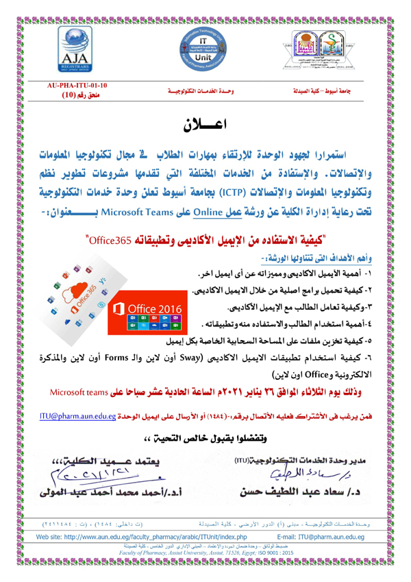 إعلان هام لطلاب دبلوم الصيدلة الإكلينيكية (لائحة قديمة) .. موعد امتحان مادة "إدارة الرعاية الصحية" يوم الأحد 21-2-2021م.