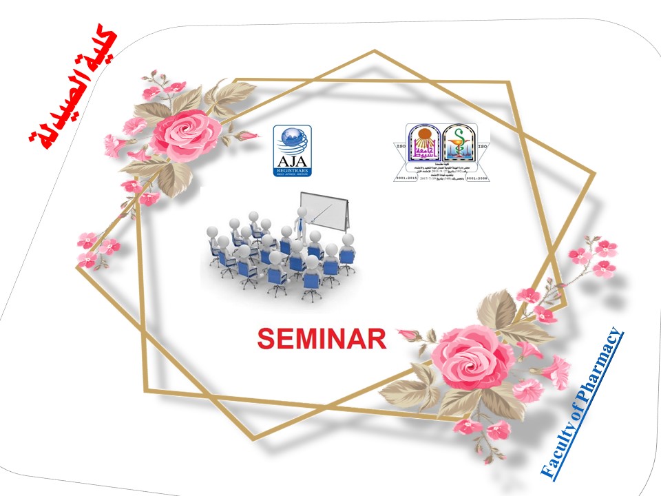 سيتم بإذن الله يوم الأحد الموافق 7 أغسطس 2022م بقسم العقاقير عقد حلقة مناقشة علمية للصيدلانية/ ولاء سعد أنور المسجلة (من الخارج) تحت عنوان :-