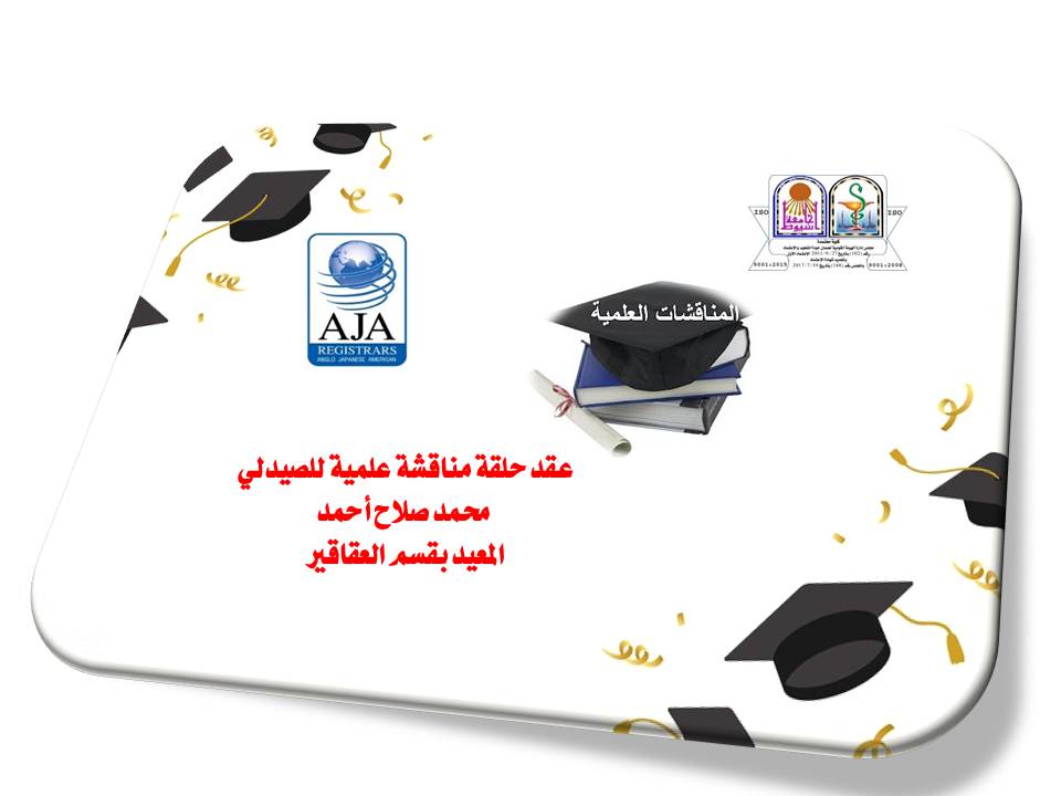 سيتم بإذن الله عقد حلقة مناقشة علمية للصيدلي/ محمد صلاح أحمد – المعيد بقسم العقاقير