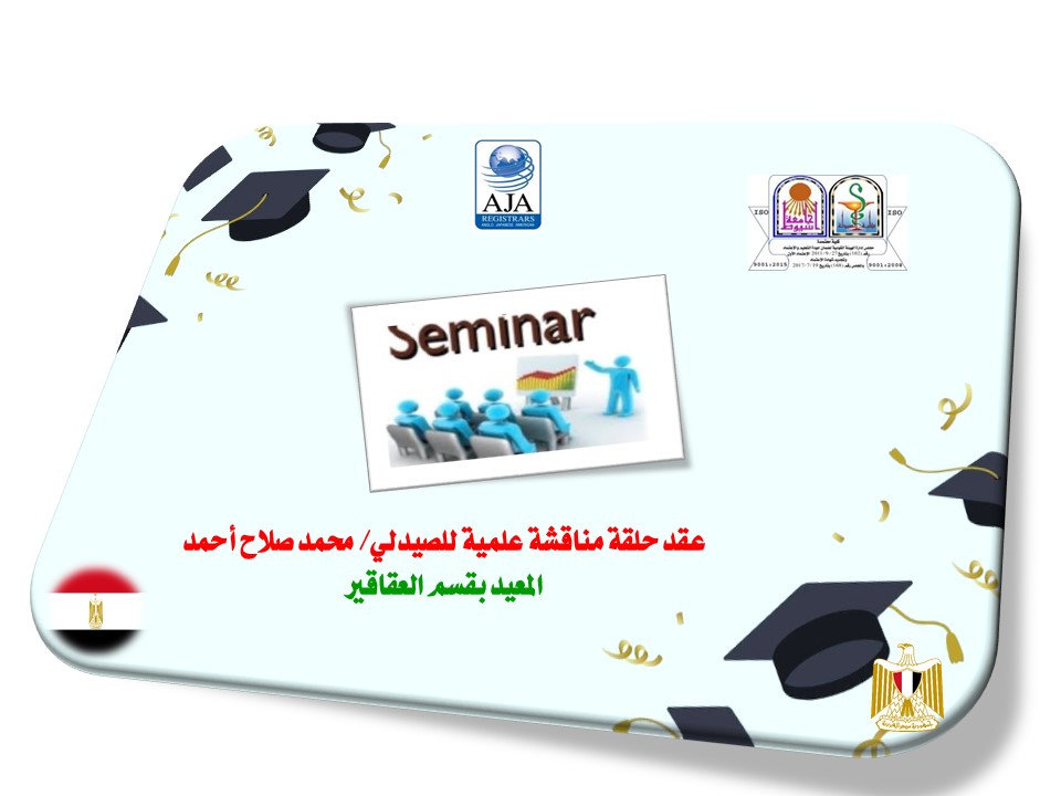 سيتم بإذن الله عقد حلقة مناقشة علمية للصيدلي/ محمد صلاح أحمد – المعيد بقسم العقاقير تحت عنوان :-